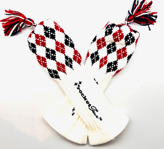NEW! Argyle Tassel covers - White with Red & Navy!